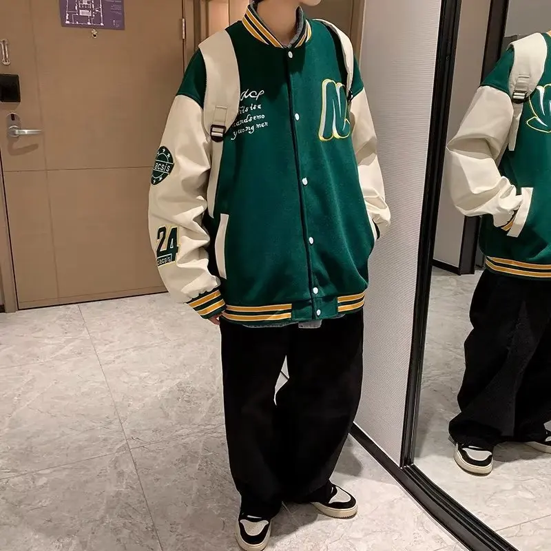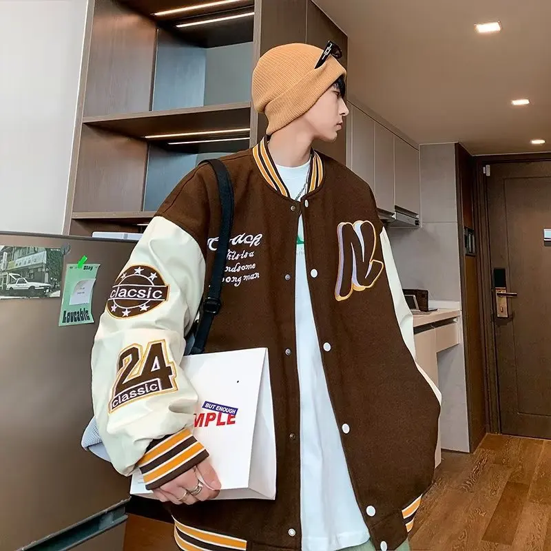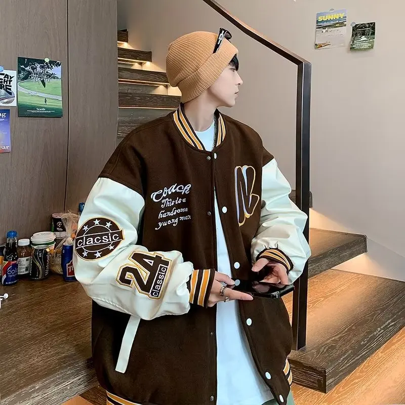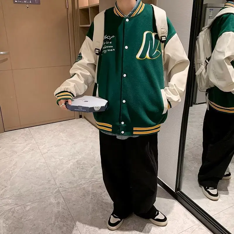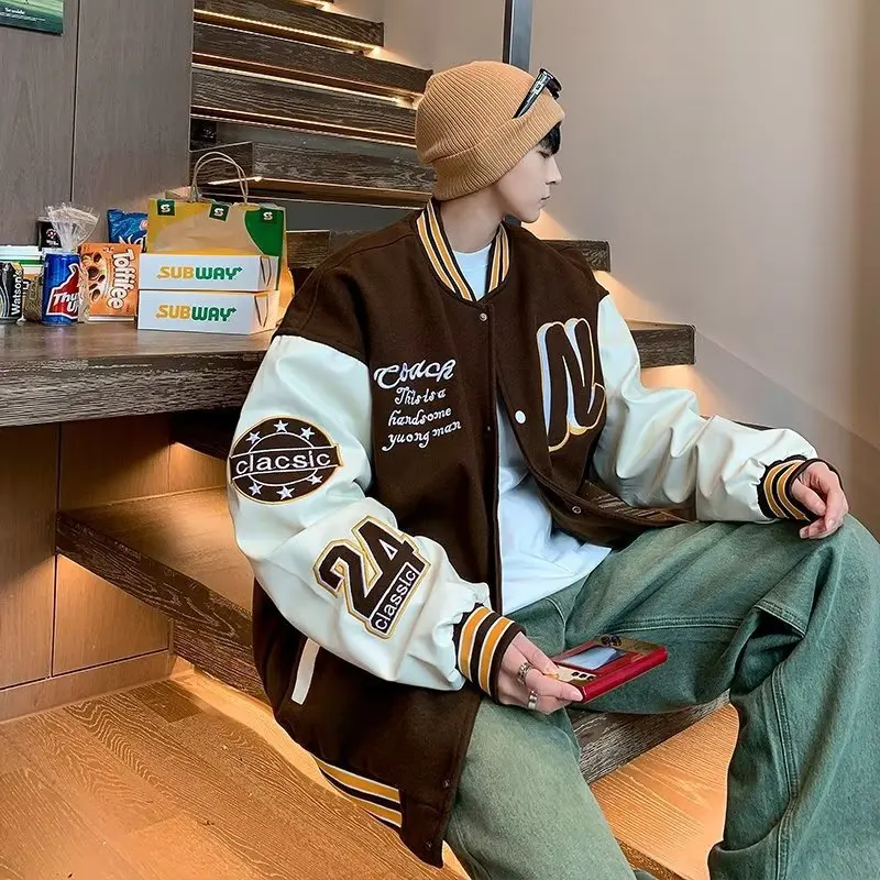 ✓ Broderie détaillée unique ✓ Style varsity patchwork ✓ Coupe loose confortable ✓ Poches fonctionnelles ✓ Streetwear automne-printemps ✓ Polyester résistant