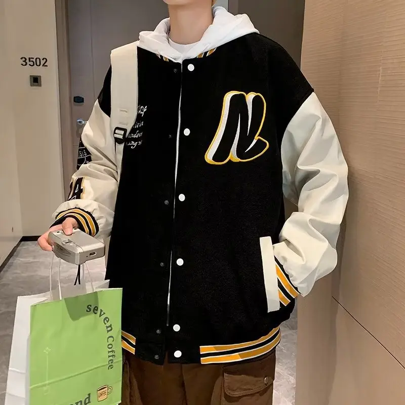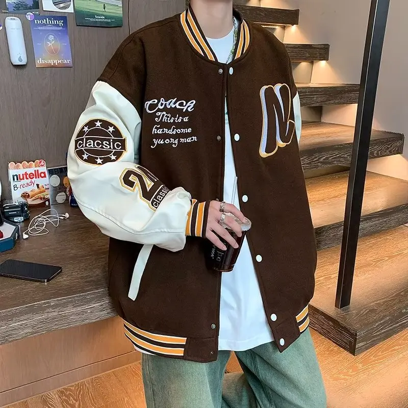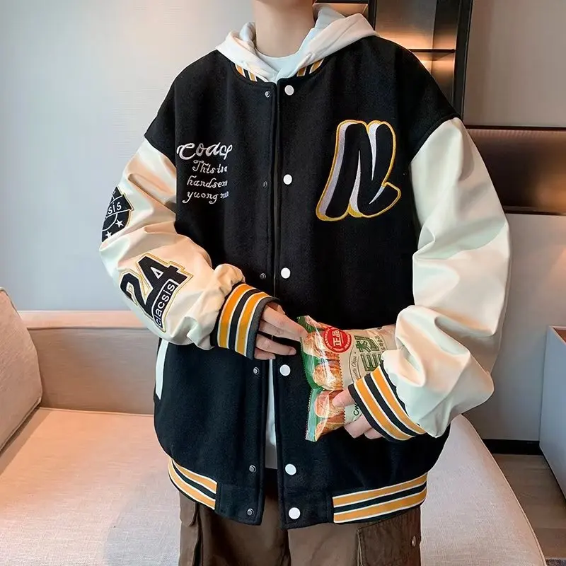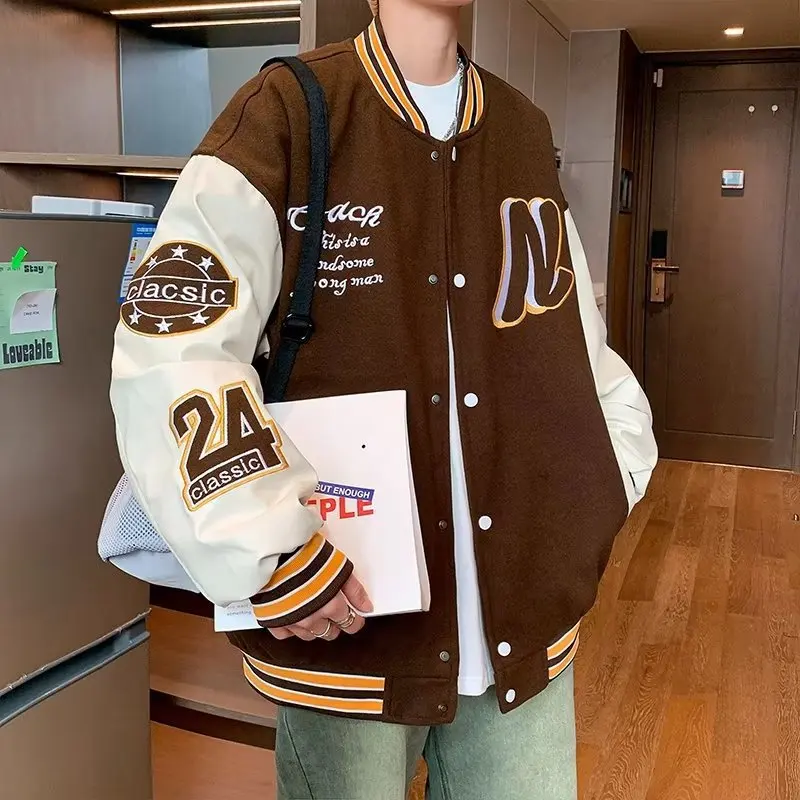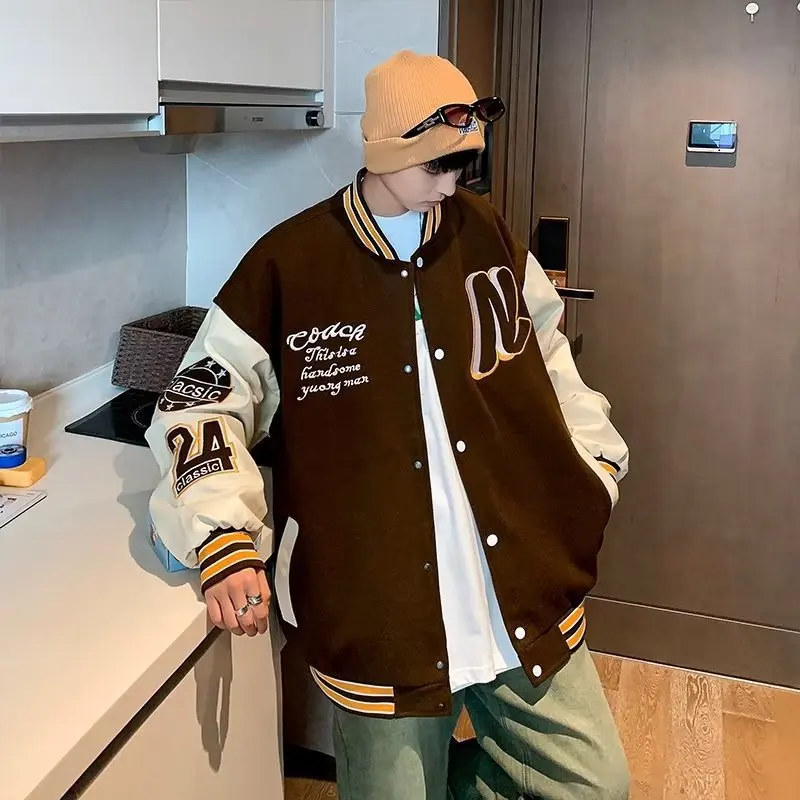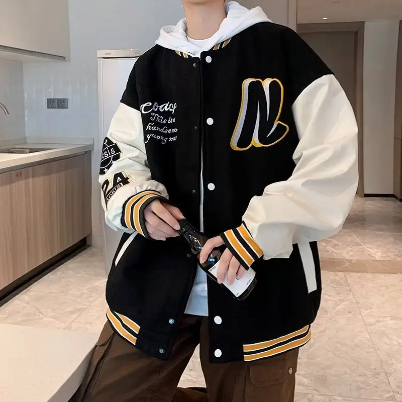 ✓ Broderie détaillée unique ✓ Style varsity patchwork ✓ Coupe loose confortable ✓ Poches fonctionnelles ✓ Streetwear automne-printemps ✓ Polyester résistant