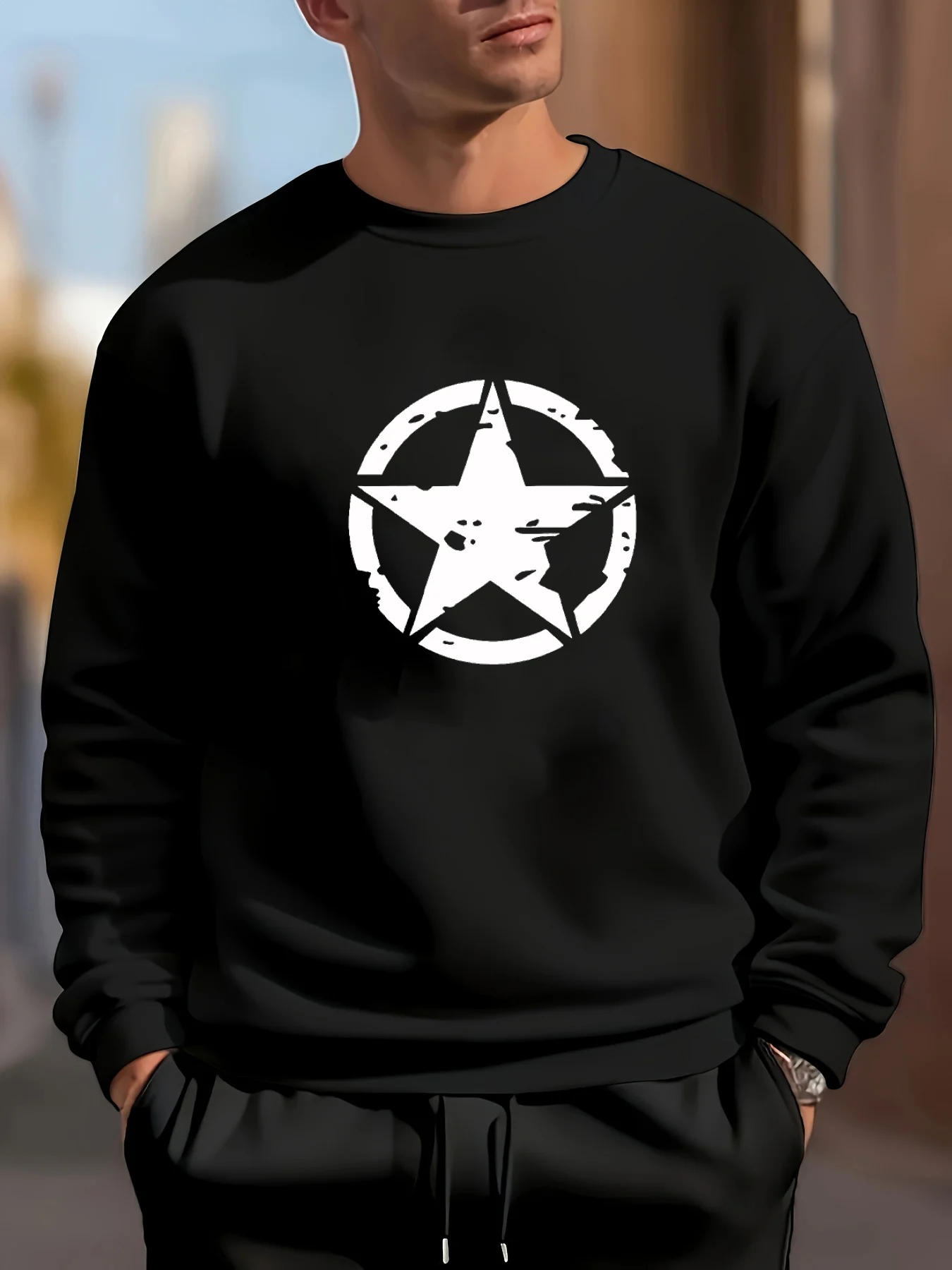Sweatshirt Homme Fleece – Sweat Casual Imprimé Étoile Style Urbain
