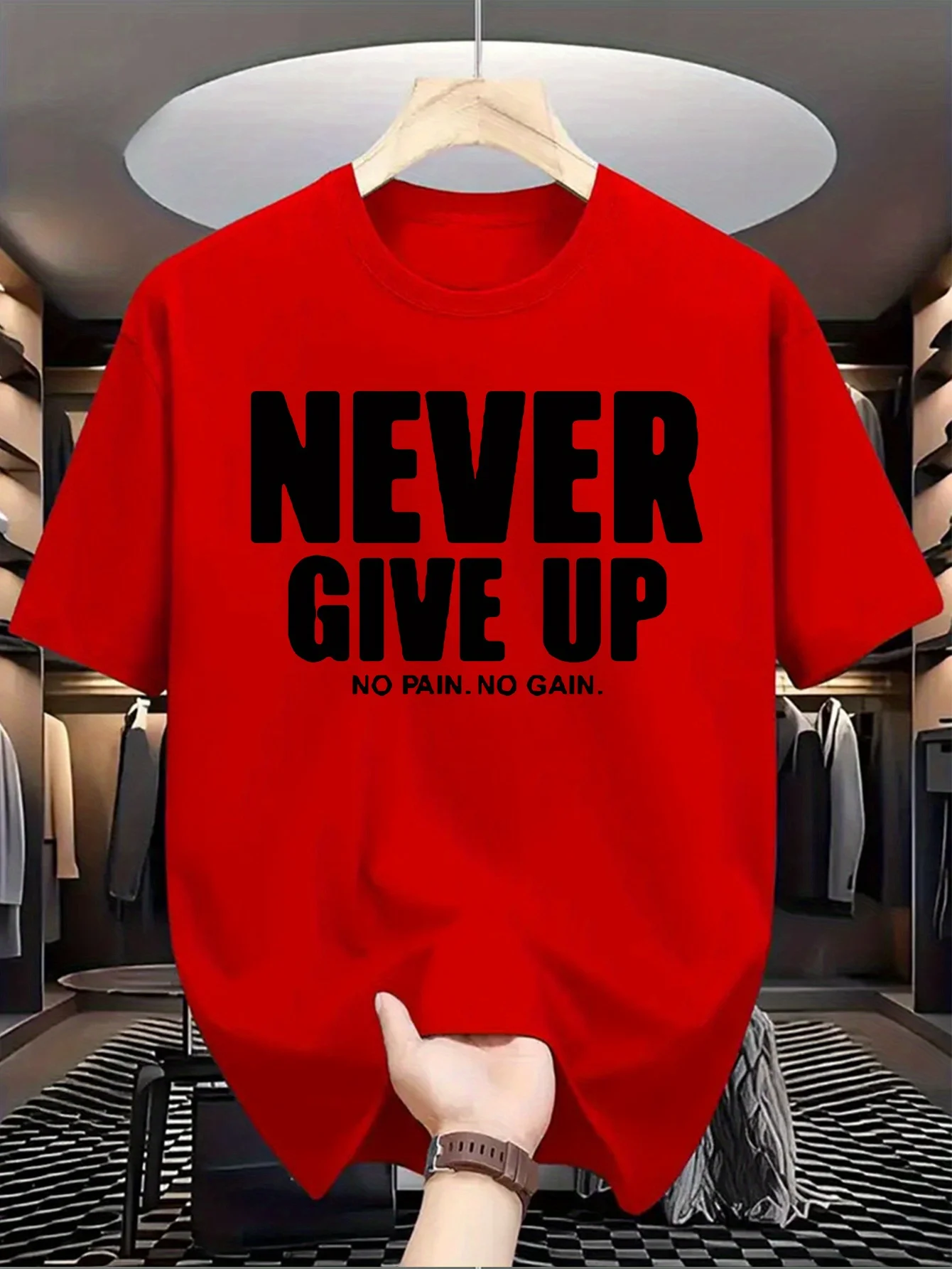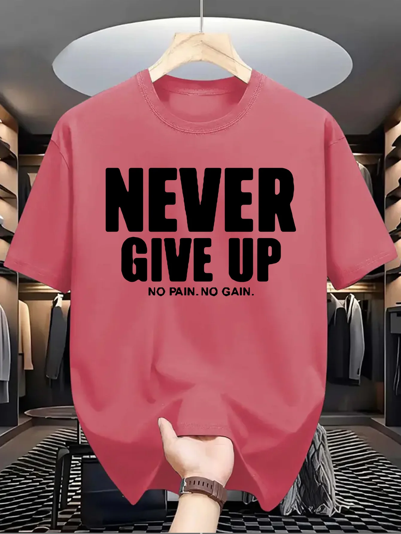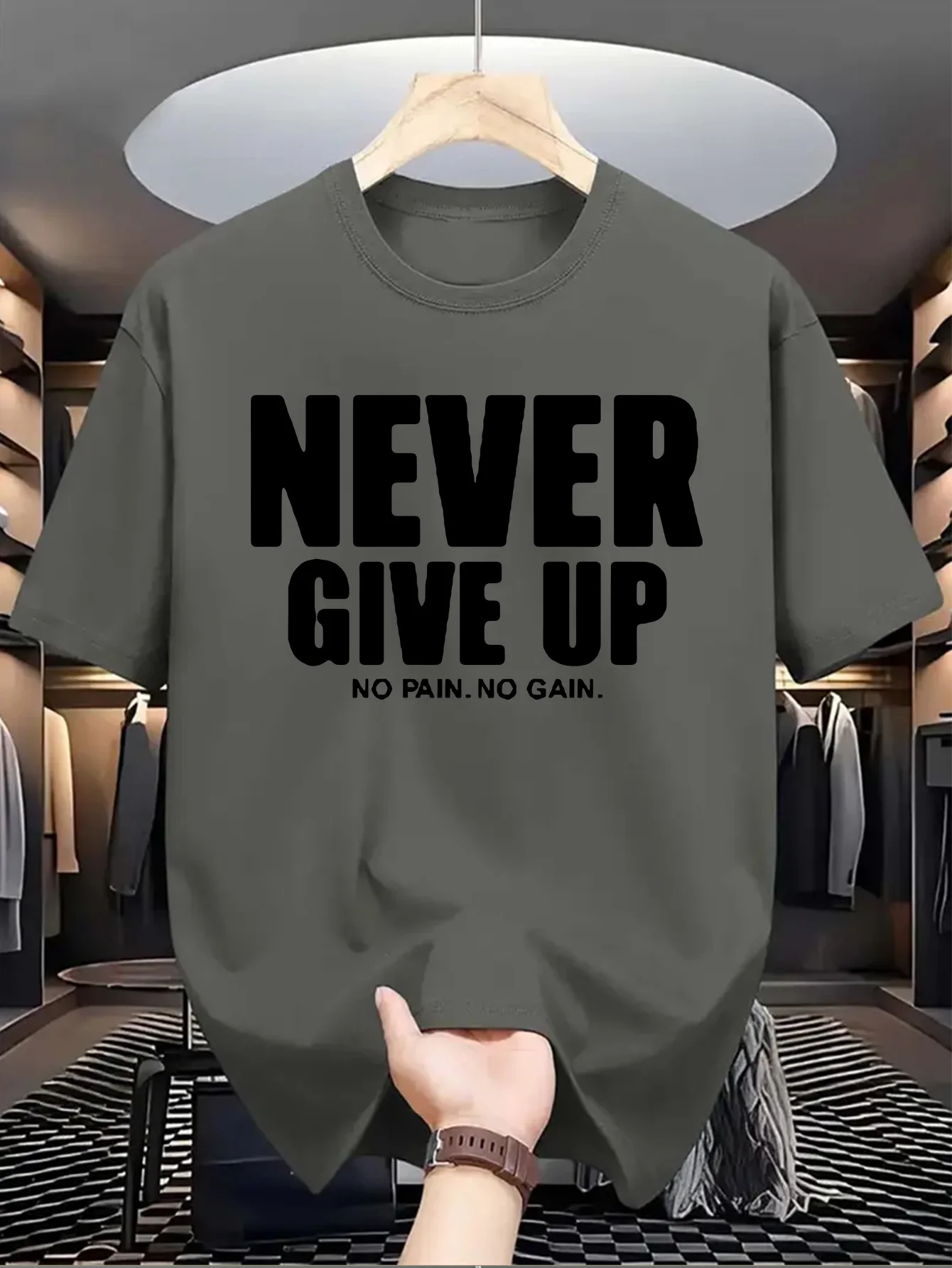 T-Shirt Homme “Never Give Up” – 100 % Coton Loose & Casual Été